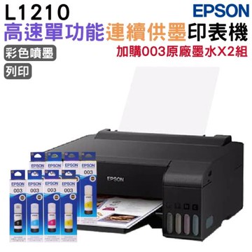 EPSON L1210 高速單功能連續供墨印表機+003原廠墨水4色2組 登錄保固3年