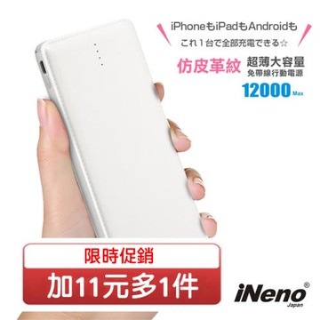 ※加11元多一件※【iNeno】超薄名片型 皮革紋免帶線 行動電源 12000mAh大容量 Micro USB(附iPhone轉接頭)