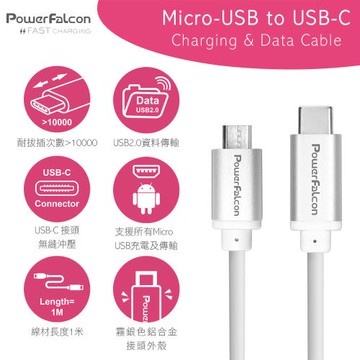 點我下載【PowerFalcon】1米 Micro-USB to USB-C充電傳輸線(3V-20V, 2.1A快充)