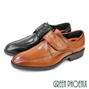 GREEN PHOENIX 男 皮鞋 紳士鞋 商務鞋 輕量 全真皮 沾黏式T9-13406