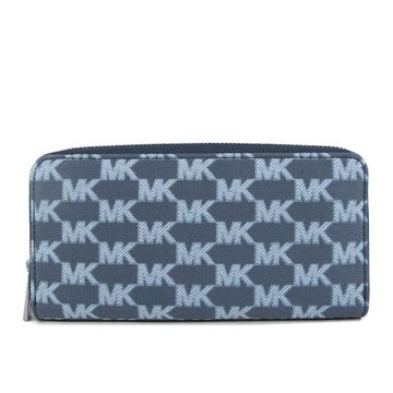 MICHAEL KORS COOPER 海軍藍色緹花描邊MKㄇ型拉鍊長夾