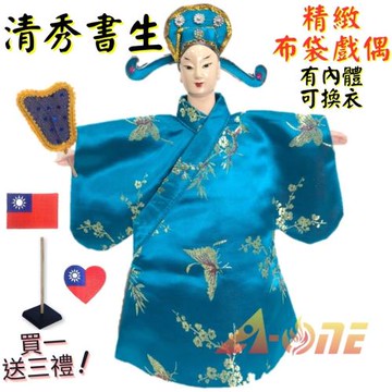 【A-ONE 匯旺】清秀書生 有內體 可換衣 精緻布袋戲偶 (送台灣島國旗熱燙燙貼 戲偶架) 表演 小生 布偶 木偶 人偶 戲偶 手偶 玩偶 童玩