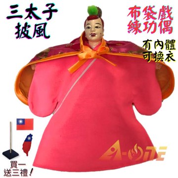 【A-ONE 匯旺】三太子 布袋戲偶 練功偶 有內體可換衣 (送臺灣背膠徽章 戲偶架) 現代 專業 布偶 人偶 戲偶 手偶 玩偶 童玩具