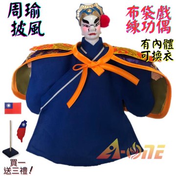 【A-ONE 匯旺】周瑜 布袋戲偶 練功偶 有內體可換衣 (送台灣島國旗布藝補丁貼 戲偶架) 傳統 練功 布偶 木偶 人偶 戲偶 手偶 玩偶 童玩