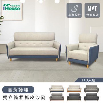 【IHouse】微笑 柔韌貓抓皮獨立筒沙發 1+2+3人座