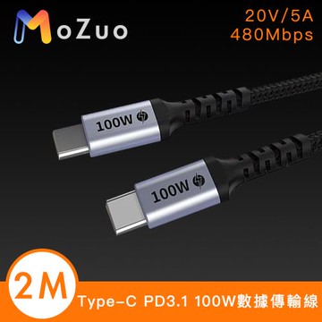 【魔宙】Type-C PD3.1快充 100W 20V/5A 大功率數據傳輸線2M