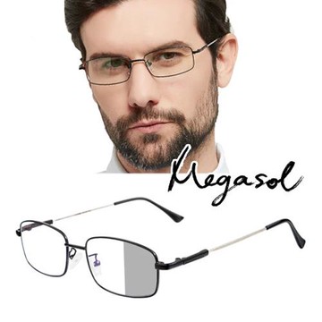 MEGASOL 輕量彈性記憶金屬航鈦金屬半方框變色漸進多焦老花眼鏡(知性俐落細框中性款YSL-LH1066)