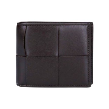 【BOTTEGA VENETA】BV Intreccio系列 寬版 雙摺短夾(含零錢袋)-深咖啡色 649605VBWD2 2145
