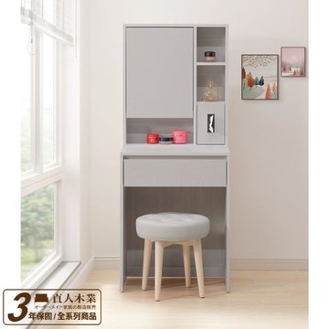 【顛覆設計】簡約2尺單抽化妝鏡台(含可收納椅)白梧桐色