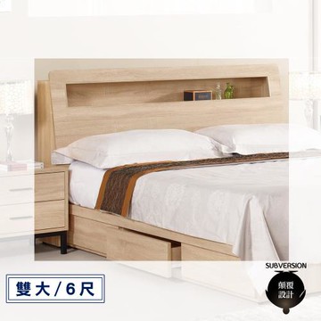 【顛覆設計】絲芮格插座收納床頭箱(雙大6尺)