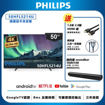Philips 飛利浦 50吋 4K Android 智慧聯網液晶顯示器 50HFL5214U (不含安裝)