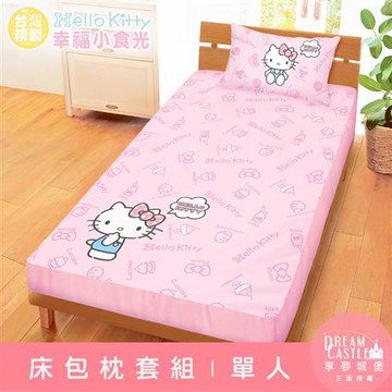 享夢城堡 單人床包枕套二件組3.5x6.2-HELLO KITTY 幸福小食光-粉