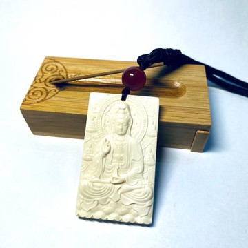 三恒猛犸象牙手工雕刻牌觀音佛吊墜蜜蠟松石文玩配飾男女款保平安