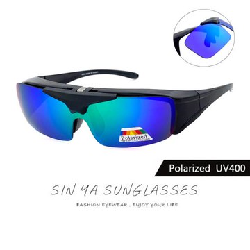 【SINYA】Polarized上翻式偏光墨鏡 REVO電鍍 黑框綠水銀 可外掛式套鏡 抗UV400/可套鏡/防眩光/遮陽