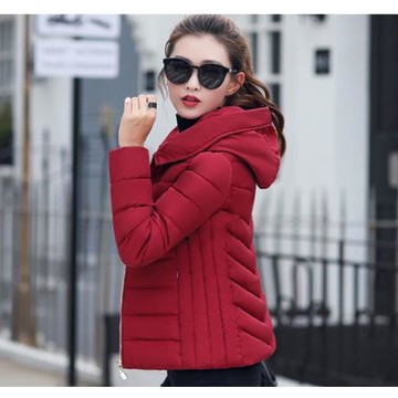 收腰立領荷葉擺~針織棉拼接休閑夾克式拉鏈羽絨服外套女冬季新款