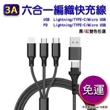 六合一 3A USB PD編織快充線 Lightning TYPE-C Micro USB