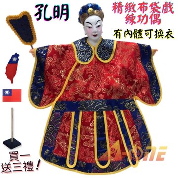 【A-ONE 匯旺】孔明 精緻布袋戲練功偶 有內體可換衣 (送台灣國旗熱燙布章 戲偶架) 教學 入門 布偶 木偶 人偶 戲偶 手偶 玩偶 童玩