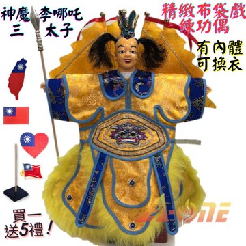 【A-ONE 匯旺】神魔李哪吒 三太子 精緻布袋戲練功偶 有內體可換衣 送台灣島國旗布藝貼章 戲偶架 台灣 課堂 布偶 人偶 戲偶 手偶 玩偶