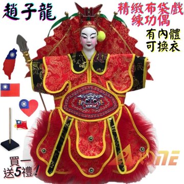 【A-ONE 匯旺】趙子龍 精緻布袋戲練功偶 有內體可換衣 (送台灣島國旗熱燙布貼 戲偶架) 民俗 演出 布偶 木偶 人偶 戲偶 手偶 玩偶 童玩
