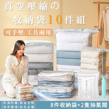 好拾選物 真空壓縮收納袋10件組附手動抽氣閥(8件收納袋+2隻抽氣閥)