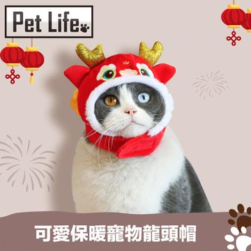 Pet Life 精細刺繡魔鬼氈速戴 可愛保暖寵物龍頭帽