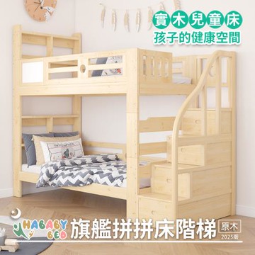 【HABABY 環安家居】無毒家具製造商 兒童雙層床(上下舖) 旗艦款拼拼床-階梯款-原木版