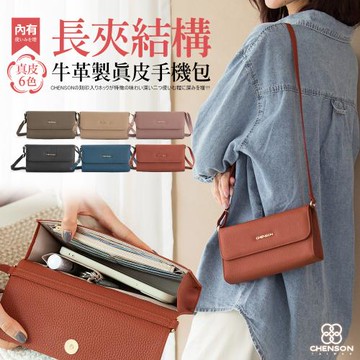 CHENSON真皮 6卡1鈔大開口手機包斜背包 (附獨立零錢袋) (P24545)