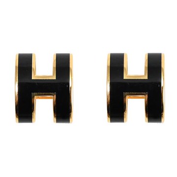 HERMES MINI POPH 經典H LOGO橢圓銀飾耳環.金/黑