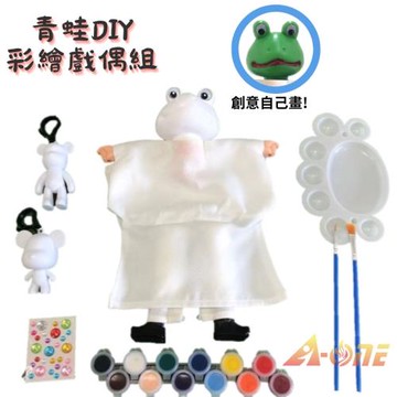 【A-ONE 匯旺】青蛙 DIY彩繪可愛布袋戲偶組(含2彩繪流體熊12色顏料2水彩筆調色盤水鑽)卡通人偶童玩具手偶