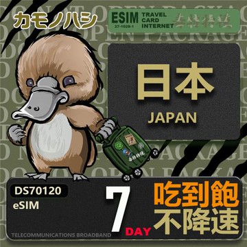 【鴨嘴獸 旅遊網卡】日本eSIM 7日 20GB 用完斷網 網卡 日本上網卡 免換卡 流量上網卡