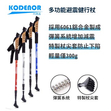 科德諾【多功能避震健行杖】健走杖 伸縮登山杖 鋁合金 伸縮杖 北歐式 拐杖 手杖 彈簧減震 露營