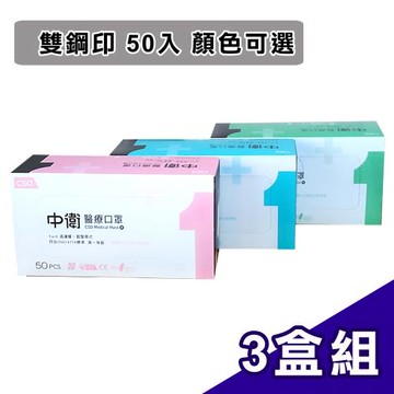 【CSD 中衛】雙鋼印醫療口罩-鬆緊式(50入/盒*3盒-三色可選)