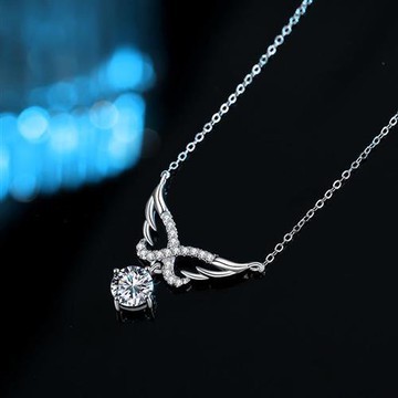 【米蘭精品】莫桑石項鍊925純銀吊墜-天使之翼D色一克拉女飾品74gk42