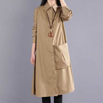 【LANNI 藍尼】★中長款純色大口袋襯衫裙(POLO衫/長裙/洋裝/連身裙)