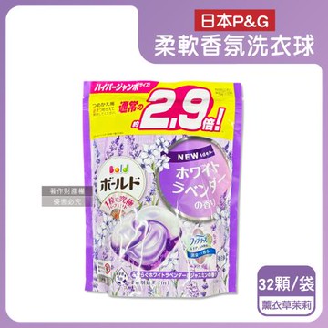 日本P&G-Bold強洗淨4合1消臭柔軟香氛洗衣凝膠球32顆/袋-薰衣草茉莉(紫)(防皺好熨燙柔順洗衣球,筒槽防霉洗衣膠囊,直立/滾筒式洗衣機皆適用)