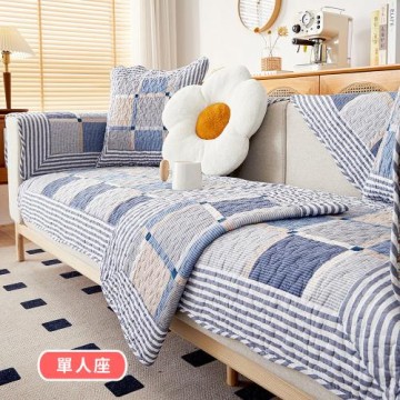 【BonBon naturel】經典格紋100%純棉拼接防滑沙發墊_單人坐墊70X70CM(多款任選)