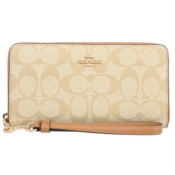 COACH C4452 經典印花PVC手提式拉鍊長夾.卡其/咖