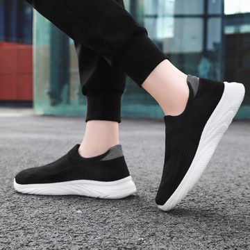 襪子男鞋春季新款飛織休閑運動鞋輕便防滑男士黑色工作布鞋一腳蹬