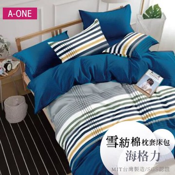 【A-ONE】吸濕透氣 雪紡棉 枕套床包組 單人/雙人/加大 - 經典藍格