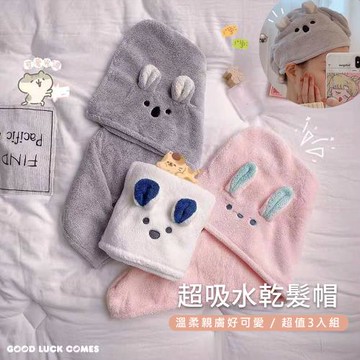 【原家居】動物造型懶人乾髮帽-3入組(珊瑚絨乾髮帽 吸水乾髮帽 擦髮巾 浴帽 兒童乾髮帽)