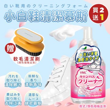點我下載【KNF 康尼菲】(買就送)小白鞋去黃去髒泡沫清潔慕斯330mlX2(加贈 撞色洗鞋洗衣軟毛清潔刷x1)