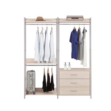 Boden-柯西5.3尺多功能開放式收納組合衣櫃(2.7尺雙吊桿+2.7尺三抽)-160x44x191cm
