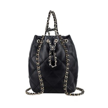CHANEL 新款菱格紋亮面小羊皮雙肩束口後背包(黑色)