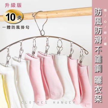 STYLE格調 10夾防風防滑不鏽鋼曬衣架 衣夾 襪夾