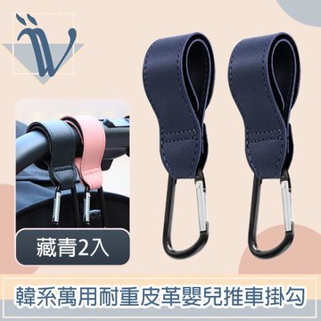 Viita 陽光韓系低調萬用耐重皮革嬰兒推車掛勾/登山扣 藏青2入