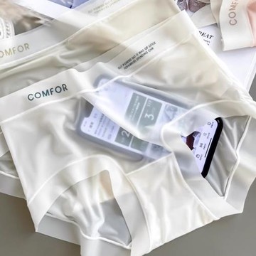 絲滑裸感法式小花性感蕾絲無痕冰絲內褲女薄款柔軟速干透氣面膜褲