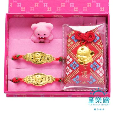 【童樂繪金飾】小寶貝 黃金御守 幸福快樂禮盒5件組 重0.2錢