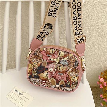 法國通勤粉色包包小眾設計網紅小熊包撞色斜挎包女單肩少女心禮物
