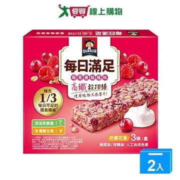 【QUAKER 桂格】每日滿足高纖穀物棒23g*3條/盒(莓果優格/草莓白巧)