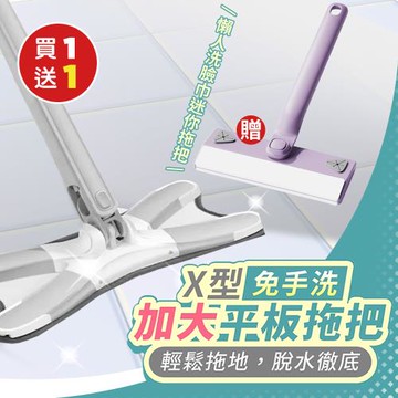 【KNF 康尼菲】(買就送)X型免手洗加大平板拖把x1(加贈 懶人洗臉巾迷你小拖把x1)